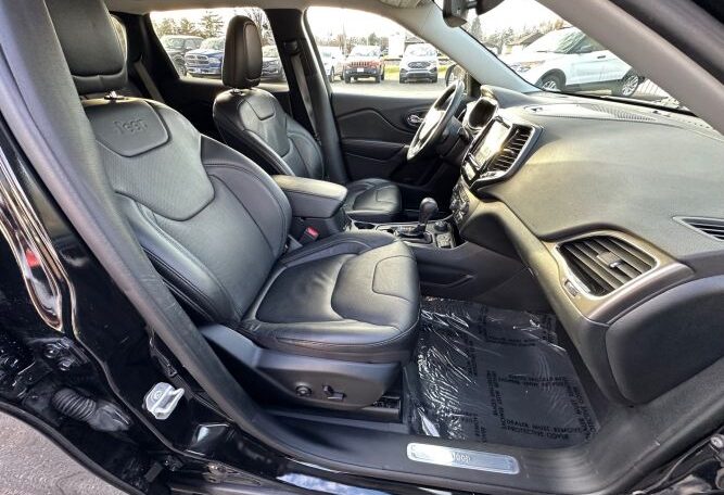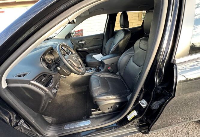 Fresh one owner inventory! This Cherokee Limited 4×4 has been serviced and detailed, and is ready to get back on the road! It runs and drives great, everything works as it should, has good condition Firestone tires, and has a clean one owner title and a clean Autocheck vehicle history with no accidents. Nicely equipped with all of the standard power options plus, keyless proximity fob entry with push button ignition, remote start, premium leather seats with htd fronts, htd steering wheel, steereing wheel mounted controls, power liftgate, factory trailer/tow pkg, 8.4” Uconnect media center with Bluetooth and NAV, Selec Terrain 4×4, and much more. Stop by and check it out, or give us a call for more info…