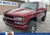 Cool new inventory! This Tahoe has been gone through with professional body work in the last three years, has a clean title in hand, has a lift, recently serviced with new battery, alternator, belts, master cylinder, and transfer case. Sharp looking aftermarket tire and wheel pkg with about 50-60% tread, aftermarket Kenwood stereo, frame is in great shape, see photos, and headliner has been custom done. Everything works as it should, heat blows hot, a/c blows cold, and truck is turn key ready. Fun truck if you want to just drive, or do some more customizing to, and maybe take it to some summer car shows! 12,489 or best offer. Stop by and check it out, or give us a call for more info…