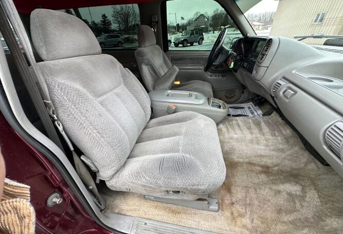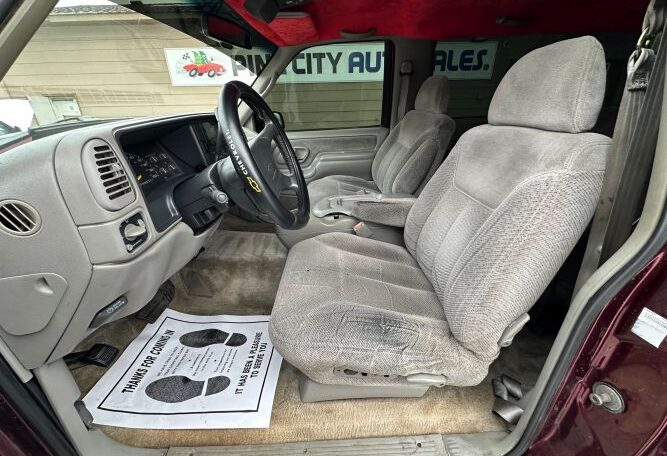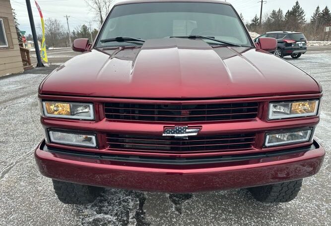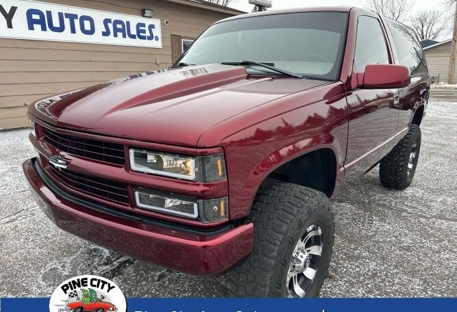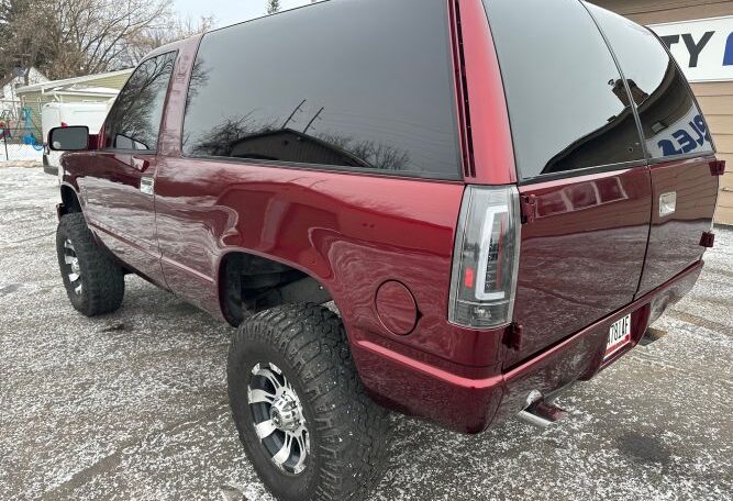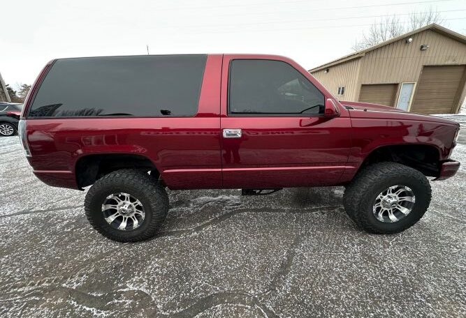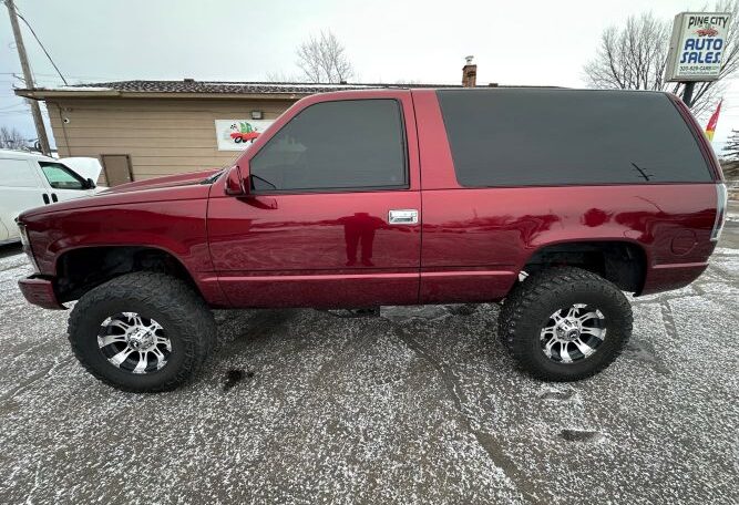 Cool new inventory! This Tahoe has been gone through with professional body work in the last three years, has a clean title in hand, has a lift, recently serviced with new battery, alternator, belts, master cylinder, and transfer case. Sharp looking aftermarket tire and wheel pkg with about 50-60% tread, aftermarket Kenwood stereo, frame is in great shape, see photos, and headliner has been custom done. Everything works as it should, heat blows hot, a/c blows cold, and truck is turn key ready. Fun truck if you want to just drive, or do some more customizing to, and maybe take it to some summer car shows! 12,489 or best offer. Stop by and check it out, or give us a call for more info…