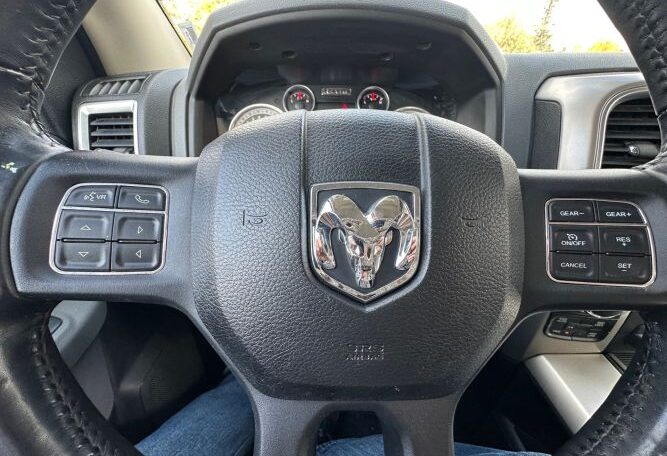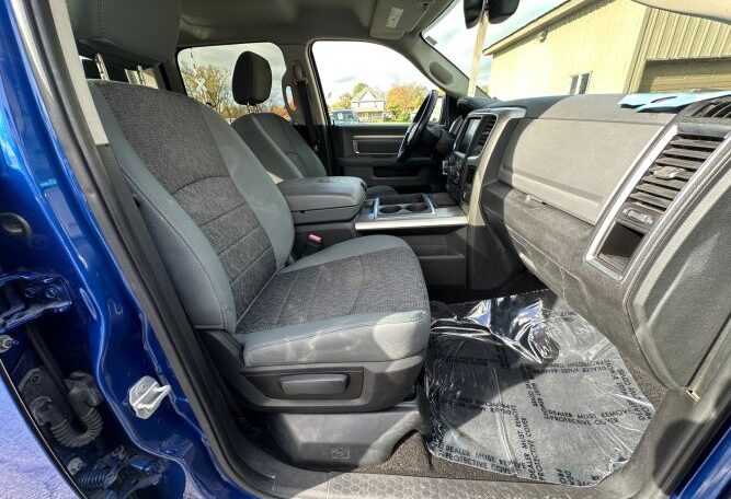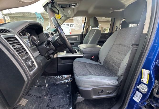 Fresh truck inventory! This RAM 1500 Bighorn has a clean title and a clean Autocheck vehicle history report with no accidents. It has been serviced, and detailed, and is ready to get back on the road. It runs and drives great, everything works as it should, and has like new tires all around. It is nicely equipped with all of the standard power options plus, premium cloth bucket seats, auto 4×4 setting, factory trailer brake, power sliding rear window, retrax tonneau cover, 8.4” Uconnect media center with Bluetooth, back up cam, and NAV, in floor storage and more. Stop by and check it out, or give us a call for more info…
