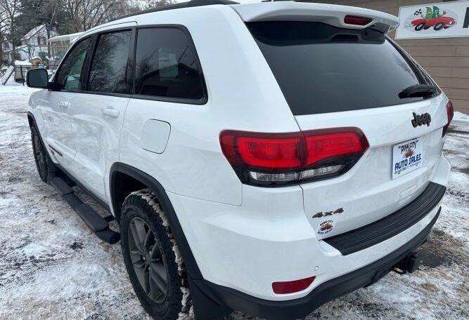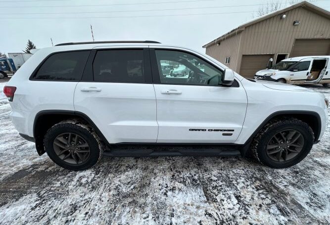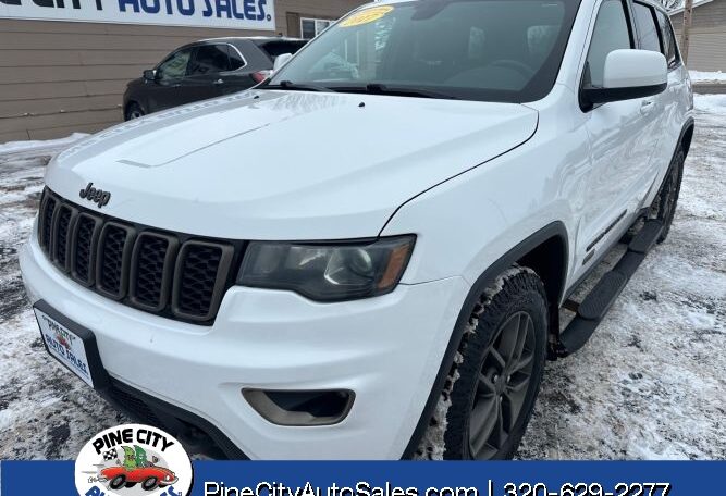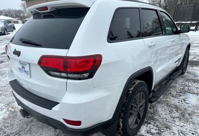 New inventory! This 75th Anniversary edition Grand Cherokee has been serviced and detailed, and is ready to get back out on the road to battle winter! It is SUPER CLEAN inside and out, runs and drives great, and has excellent condition tires all around. It has a clean title and a clean Autocheck vehicle history report with no accidents. It is nicely equipped with all of the standard power options plus, remote start, premium htd cloth seats with power drivers side, power liftgate, steering wheel mounted controls, htd steering wheel, 8.4” Uconnect touchscreen media center with Bluetooth, back up cam, and NAV, 75th Anniversary badging, and more! Stop by and check it out, or give us a call for more info…